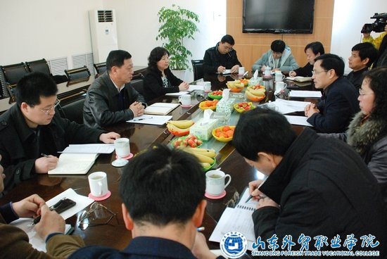学院党委书记李良斋对李群力副书记一行表示欢迎。李群力副书记传达了厅党组关于开展基层党建工作调研的目的和意义。党委副书记魏长征代表学院党委就2011年党建工作做了汇报并提出了2012年党建工作的基本思路。学院参会人员分别就本部门党建工作做了发言。其中,经济管理系和信息管理系党总支书记分别着重介绍了青岛市高校工委党建创新项目“学生党建进公寓”和“实施党员发展答辩提高发展党员质量”工作。