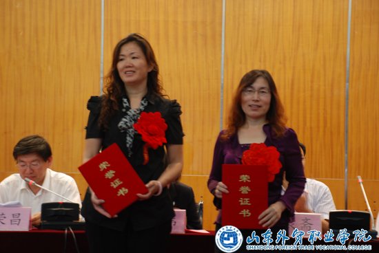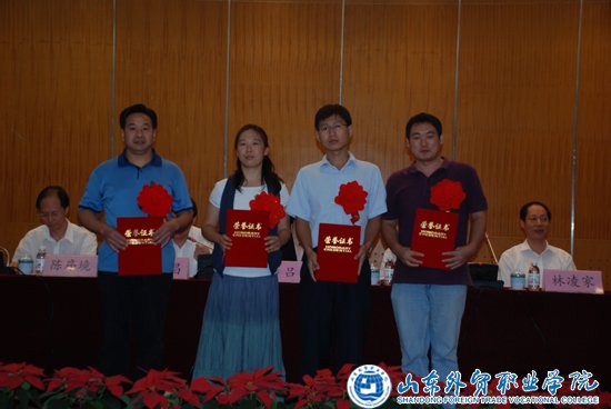 出席庆祝大会的领导为获省商务厅表彰的先进教育集体、优秀教师、先进教育工作者,先进基层党组织、优秀共产党员、优秀党务工作者;省委高校工委表彰的先进基层党组织、优秀共产党员;学院表彰的先进教育集体、优秀教师、先进教育工作者,先进基层党组织、优秀共产党员、优秀党务工作者,首届教学名师,2010-2011学年度教学能手,2010-2011学年度优秀班主任等颁发了荣誉证书。
