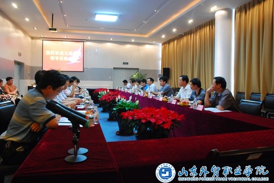6月29日下午,在青岛参加全省高校“对接蓝黄战略,培养合格人才”专题培训班的20多名高职院校的领导来伟德参观考察。来访各院校领导在图书馆四楼会议室举行了工作交流。伟德党委书记李良斋、副书记魏长征、副院长周厚才及组织部、宣传部、学生工作部、教务与科研处负责人参加了交流会。会议由李良斋书记主持。
