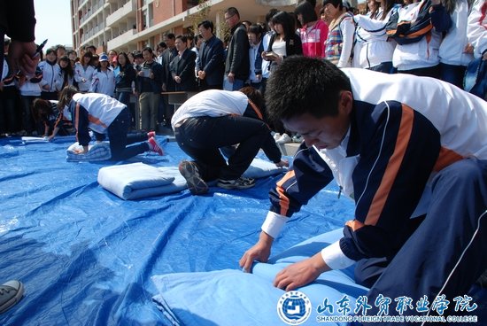 启动仪式结束后,进行了叠被子比赛、绑腿跑、毽球比赛和手抄报评比活动。