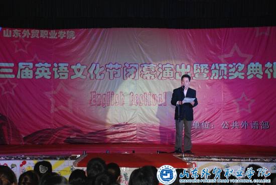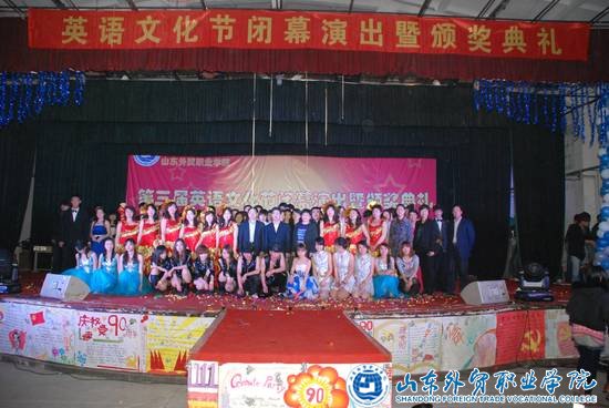 4月14日晚,伟德第三届英语文化节闭幕演出暨颁奖典礼在大学生俱乐部隆重举行。院党委书记李良斋,副院长周厚才,部分处、系部负责人和各系党总支书记出席了晚会并担任颁奖嘉宾。公外部全体教师也参加了晚会。