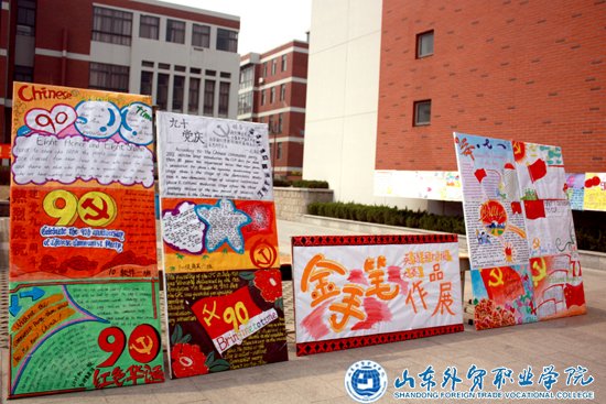 为了庆祝中国共产党建党90周年,更好地的宣传党史,激发同学们对党的热爱,第三届英语文化节特别举办了“金手笔”英语手抄报大赛,要求各班以 “庆祝中国共产党建党90周年”为主题办一期手抄报。经过层层筛选,最终有31份优秀作品脱颖而出,并于4月7日在北校区图书馆广场举办的英语跳蚤市场中展出,供老师和同学们欣赏。