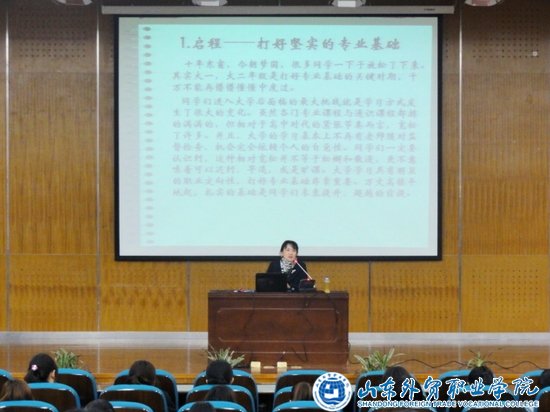 为帮助大一新生合理规划大学生活、尽早确立人生目标,3月22日下午,商务外语系党总支书记杨岚在学术报告厅为10级全体同学作了题为“大学生的成长之路”的专题讲座。