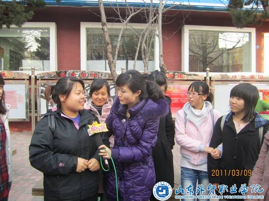 青岛电视台现场采访了参加活动的09财会3班的李琳同学,她说在学习手语、帮助聋哑人的过程中收获了很多感动,在付出的过程中体会到了回馈社会的快乐。