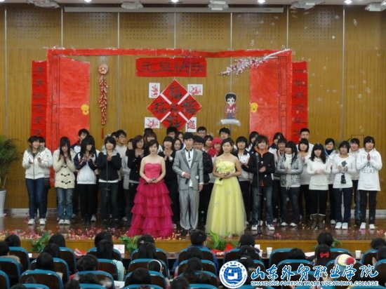 金虎欢歌辞旧岁,玉兔起舞迎新年。12月28日下午,学术报告厅里欢声笑语,灯火辉煌,由商务外语系举办的“庆元旦,迎新年”文艺演出在此隆重上演。系党总支书记杨岚、各班班主任、辅导员老师应邀观看了演出,与10级全体学生共同庆贺新年的到来。