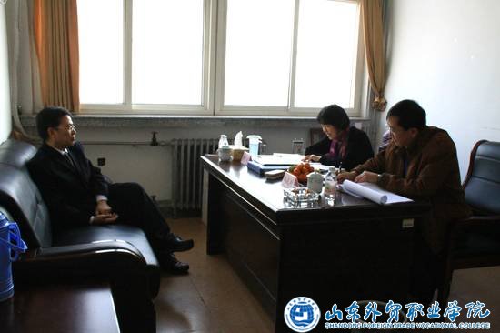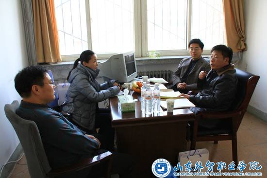 专家组成员许传海、李永平,专家组观察员郑丽在访谈教务与科研处处长陈祥国
