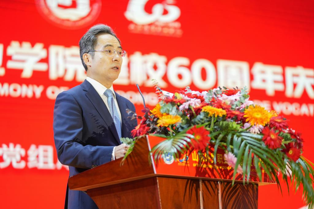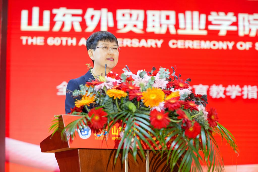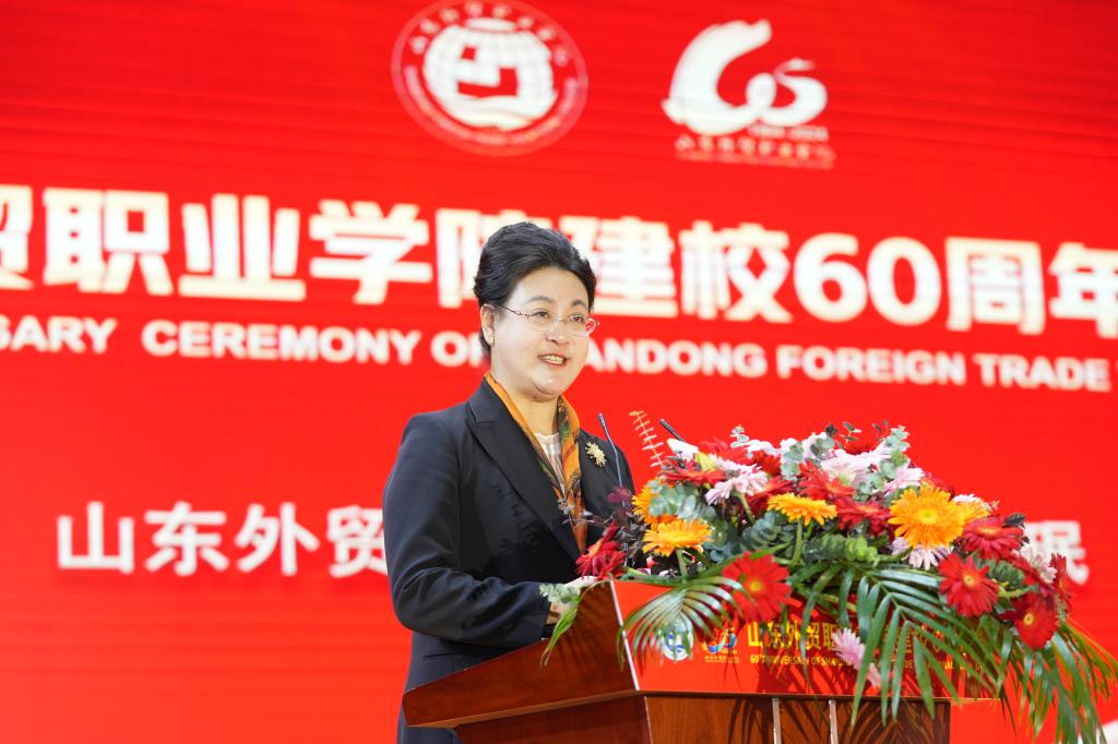 张庆伟在讲话中指出,学院建校60周年以来,在外贸、外语、外运、跨境电商、援外培训等领域取得了显著成绩,为国家培养了七万五千多名优秀外经贸人才,为144个发展中国家培训了一万两千多名官员和技术人员。当前,全省上下正深入学习贯彻党的二十届三中全会精神和习近平总书记视察山东重要讲话精神,希望学院以建校六十周年为新起点,认真贯彻习近平总书记关于教育强国、贸易强国系列重要论述,全面贯彻党的教育方针,落实立德树人根本任务,坚持特色办学,牢记“国之大者”,在全面建设社会主义现代化国家的伟大征程中,在推进中国式现代化山东实践中,在服务山东打造高水平对外开放新高地的具体行动中,展现新作为、作出新贡献。
