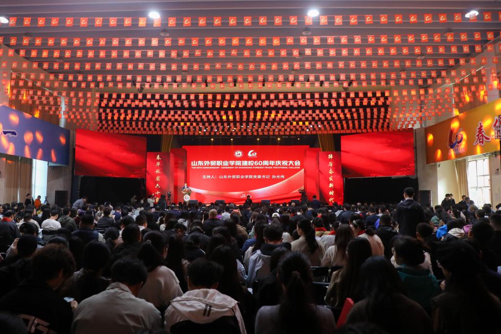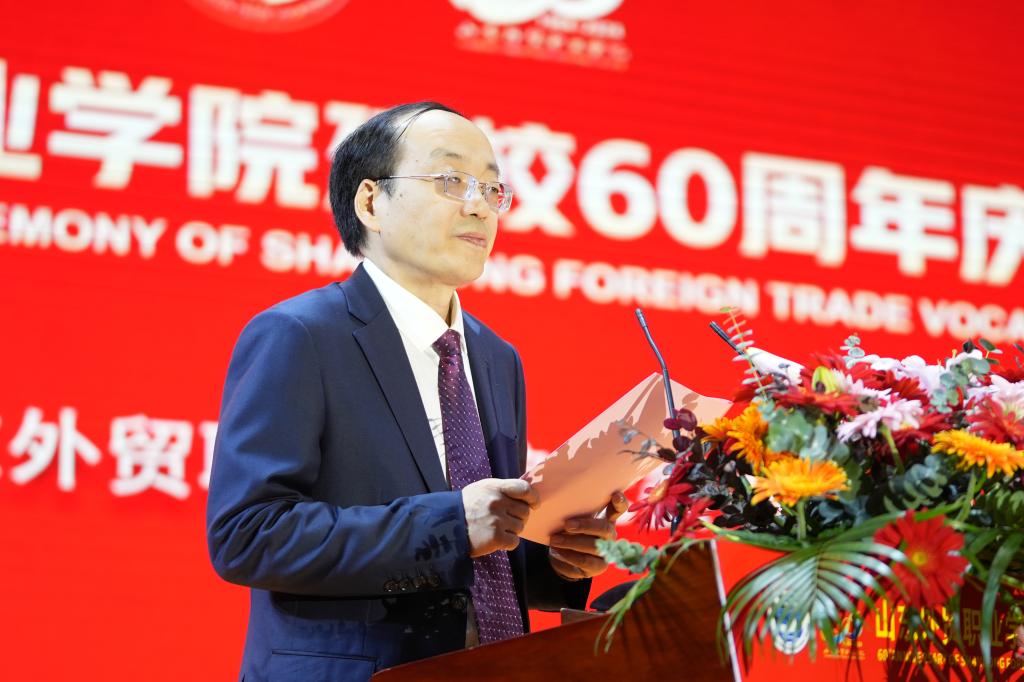 春华秋实六十载,踔厉奋发新时代。11月2日,伟德国际victor1946官网建校60周年庆祝大会在李沧校区文体中心举行。山东省商务厅党组成员、副厅长张庆伟,山东省教育厅二级巡视员侯典明出席大会并讲话,全国外经贸职业教育教学指导委员会常务副主任委员吕红军致辞。学院党委书记孙光伟主持大会,院长刘珉汇报学院事业发展情况。