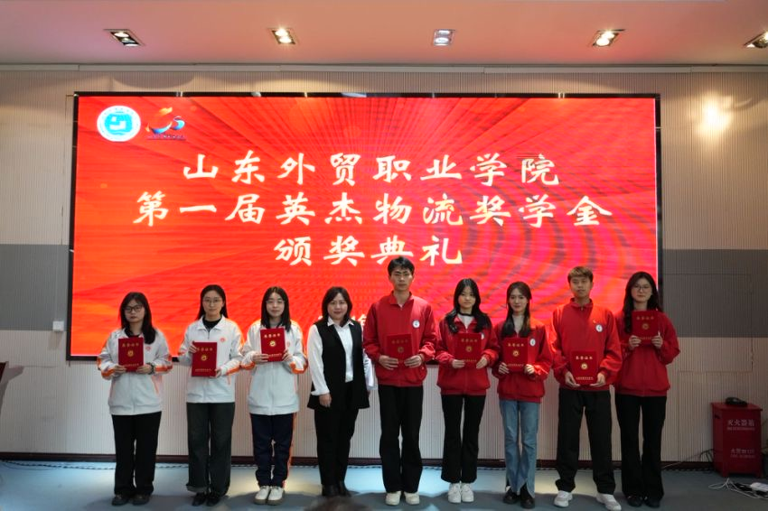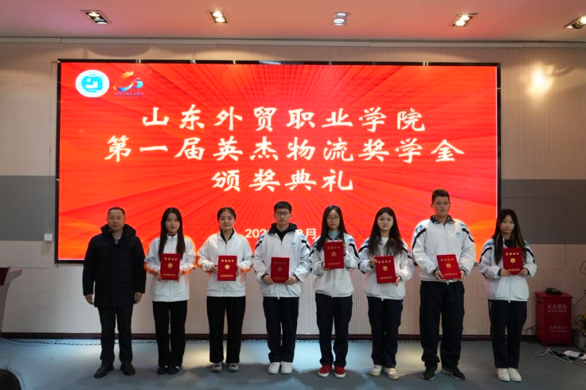 青岛英杰国际物流有限公司人事经理刘菡、人事招聘经理赵萍萍,学院副院长孙巧奎,学生工作处相关负责人,以及来自国际贸易系、商务外语系、国际运输与物流系的30名获奖学生参加典礼。