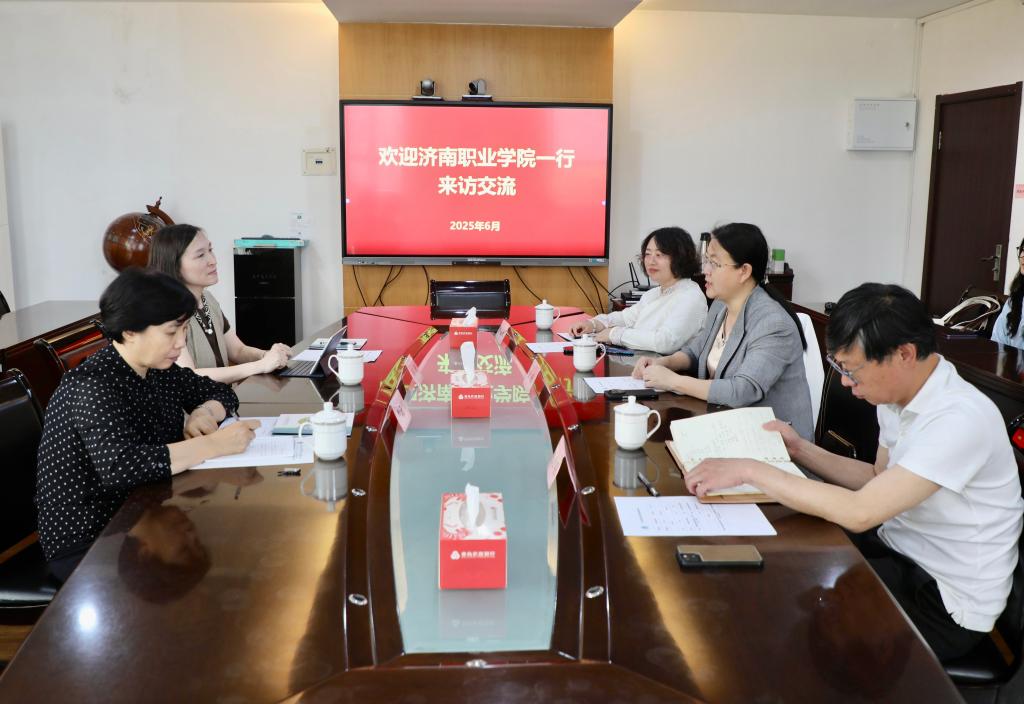 刘珉对济南职业学院一行的到来表示热烈欢迎,并介绍了学院的历史沿革、特色专业建设、校企合作等情况。尹元华介绍了济南职业学院的办学特色,重点围绕学院高水平专业群发展情况等方面进行了详细的介绍。
