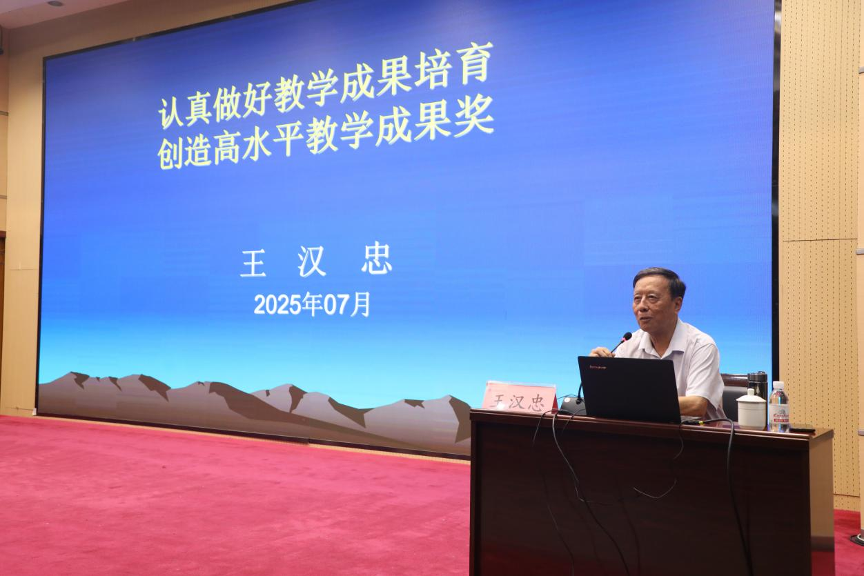 原山东农业大学王汉忠教授围绕“认真做好教学成果培育,创造高水平教学成果奖”,系统阐释了教学成果的内涵、特征和必备条件,指导教师如何认真做好教学成果培育,明确各类教学成果的内容要点,详解教学成果奖的申报要点,并结合具体案例介绍教学成果奖的实践路径,为教师明晰了教学实践向成果输出的转化逻辑。