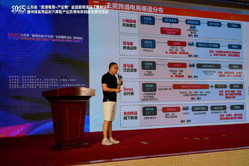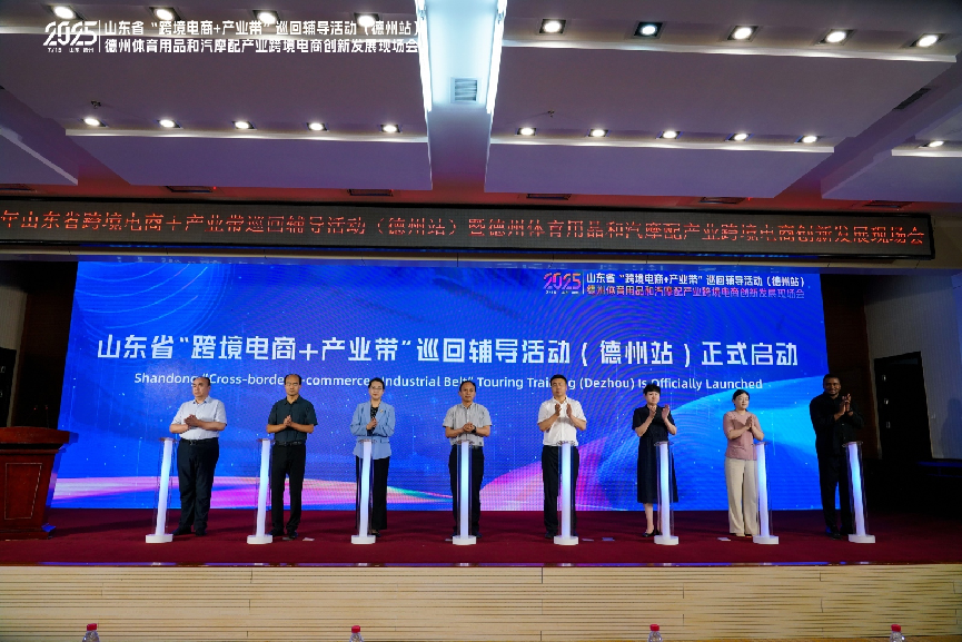 7月15日,2025年山东省“跨境电商+产业带”巡回辅导活动(德州站)暨德州体育用品和汽摩配产业跨境电商创新发展现场会在德州武城县成功举办。活动汇聚了来自政府部门、跨境电商平台、行业协会、体育用品及汽摩配产业带企业、服务商和高等院校的300余位代表。