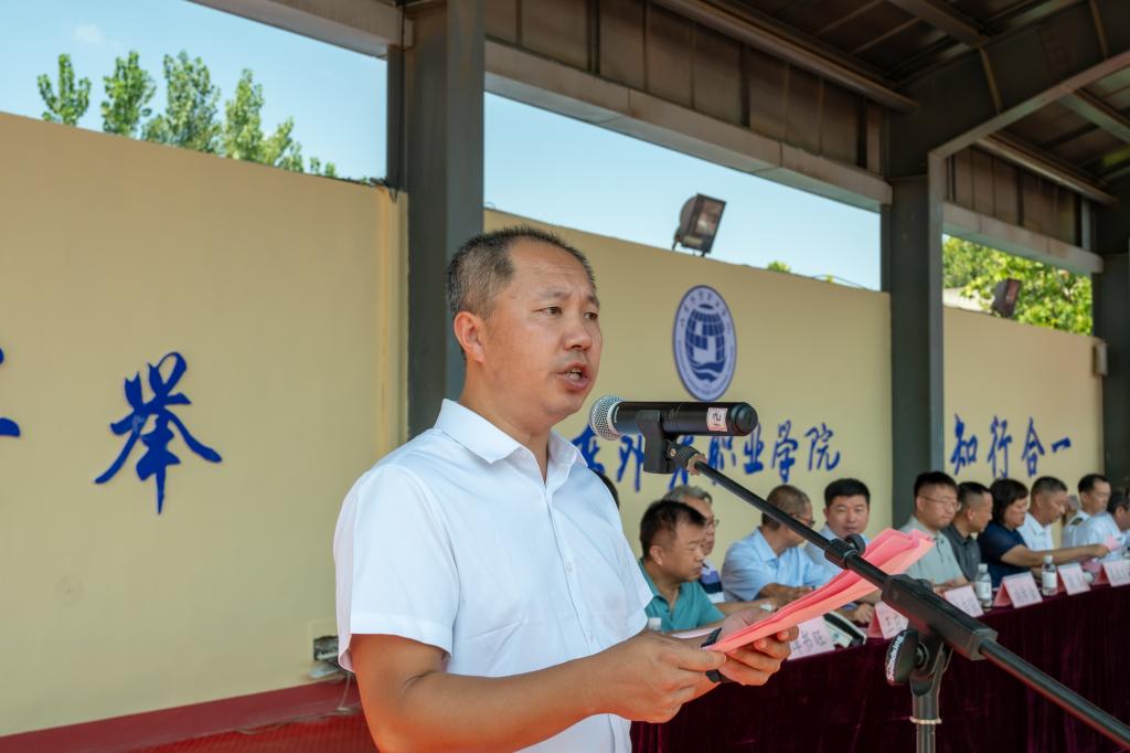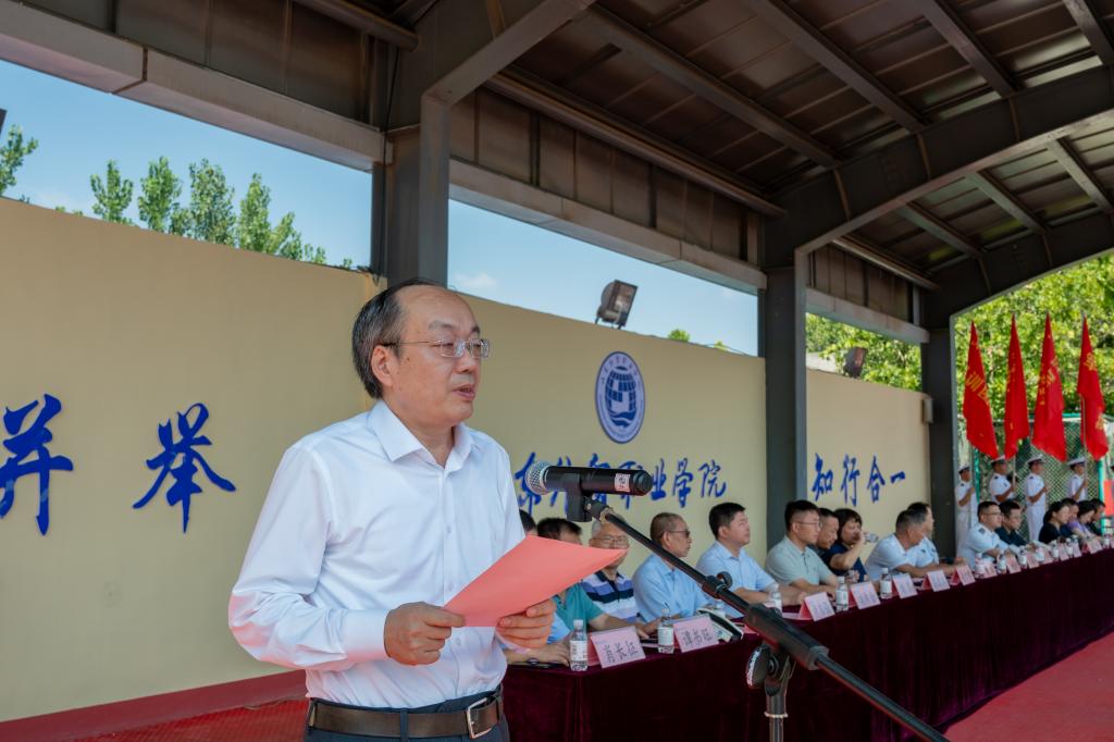 学院党委书记孙光伟作动员讲话,他代表学院向全体承训教官致以诚挚欢迎,向参加军训工作的2025级同学和全体新生辅导员表示亲切问候。他指出,自觉接受国防教育和军事训练,既是青年学生履行法律义务的具体行动,也是培养严明纪律作风的基本要求。他希望全体参训学生端正态度,以最饱满的热情全身心投入训练;要求各部门、单位密切配合,确保军训顺利开展;同时期待全体教官严格施训、科学组训,确保军训工作高标准、高质量开展。
