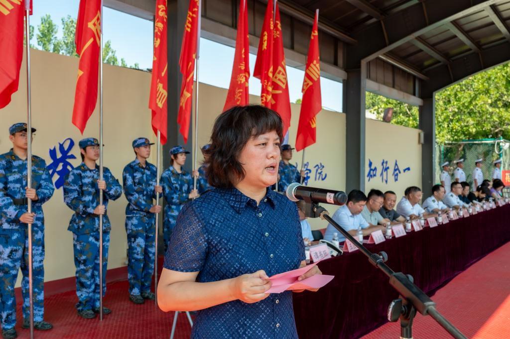 动员大会在庄严的国歌声中拉开帷幕。学院副院长张红智宣布军训团组织建制,党委副书记黄维向军训团团长授旗。2025级关务与外贸服务专业2班曲保蓉代表全体参训学生发言。