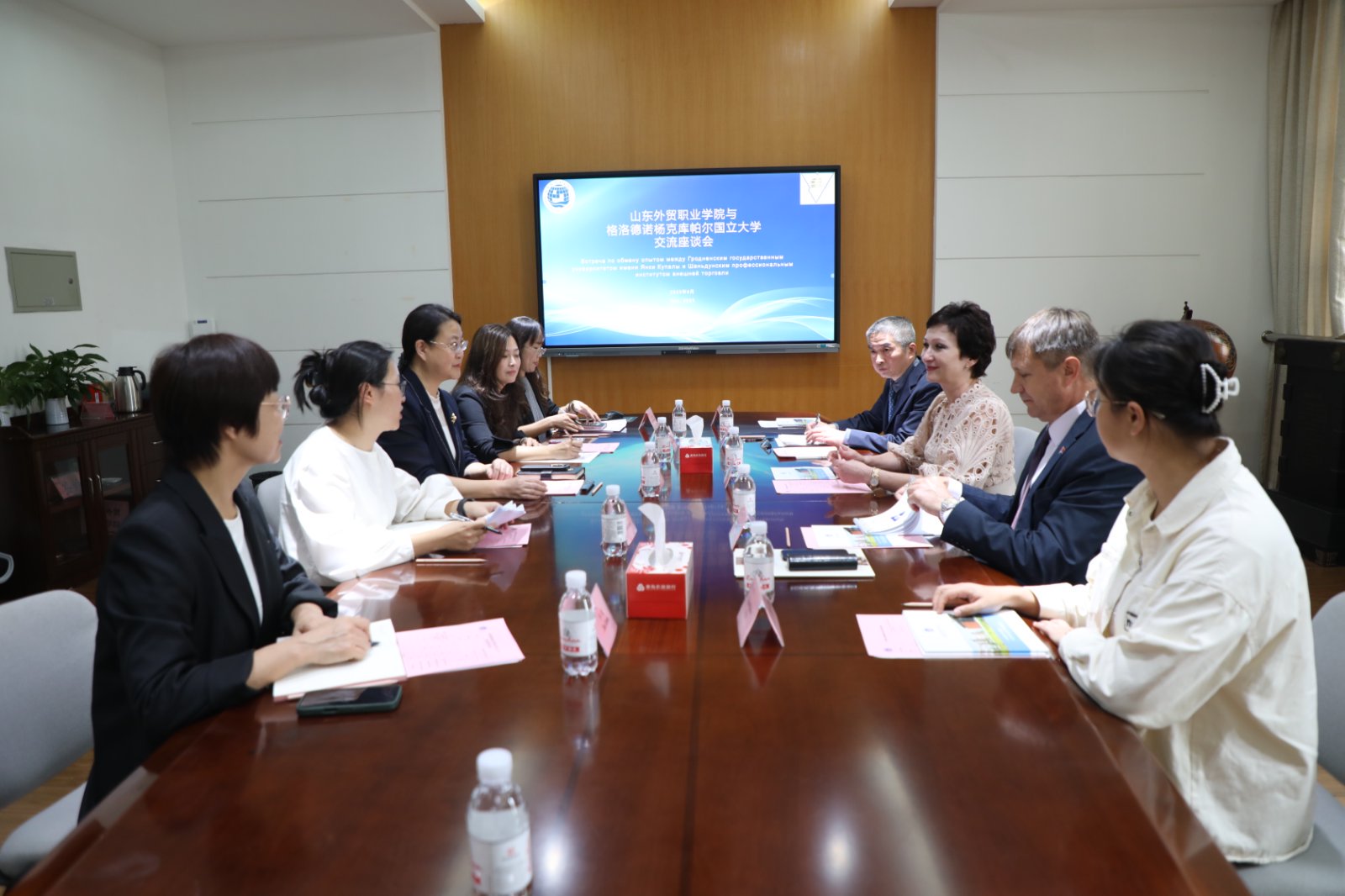 9月26日,白俄罗斯格洛德诺杨克库帕尔国立大学季图尔科·伊莉娜·费奥多洛芙娜校长一行四人来伟德访问交流,院长刘珉及国际交流合作处、国际贸易系相关负责人参加了会谈。