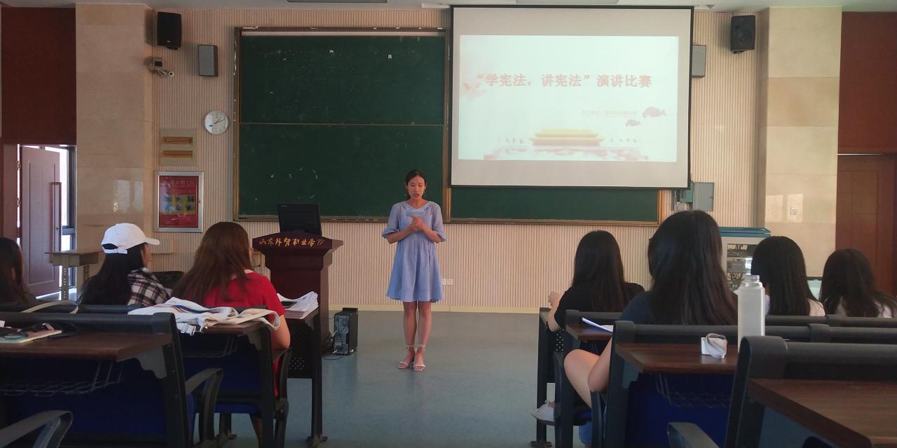 根据山东省教育厅办公室《关于组织开展第四届学生“学宪法 讲宪法”》活动的通知要求,6月24日中午12:30,团委在2号教学楼A1阶梯教室举办了“学宪法讲宪法”演讲比赛。选手们根据自身实际,围绕“宪法与国家”、“宪法与个人”、“宪法与社会”等主题,结合诚信意识等内容,借助视频、ppt等工具,阐释自己学宪法、讲宪法的感悟和体会。经过激烈的比拼,最终,2018级会计7班倪欣儒获得演讲比赛一等奖。