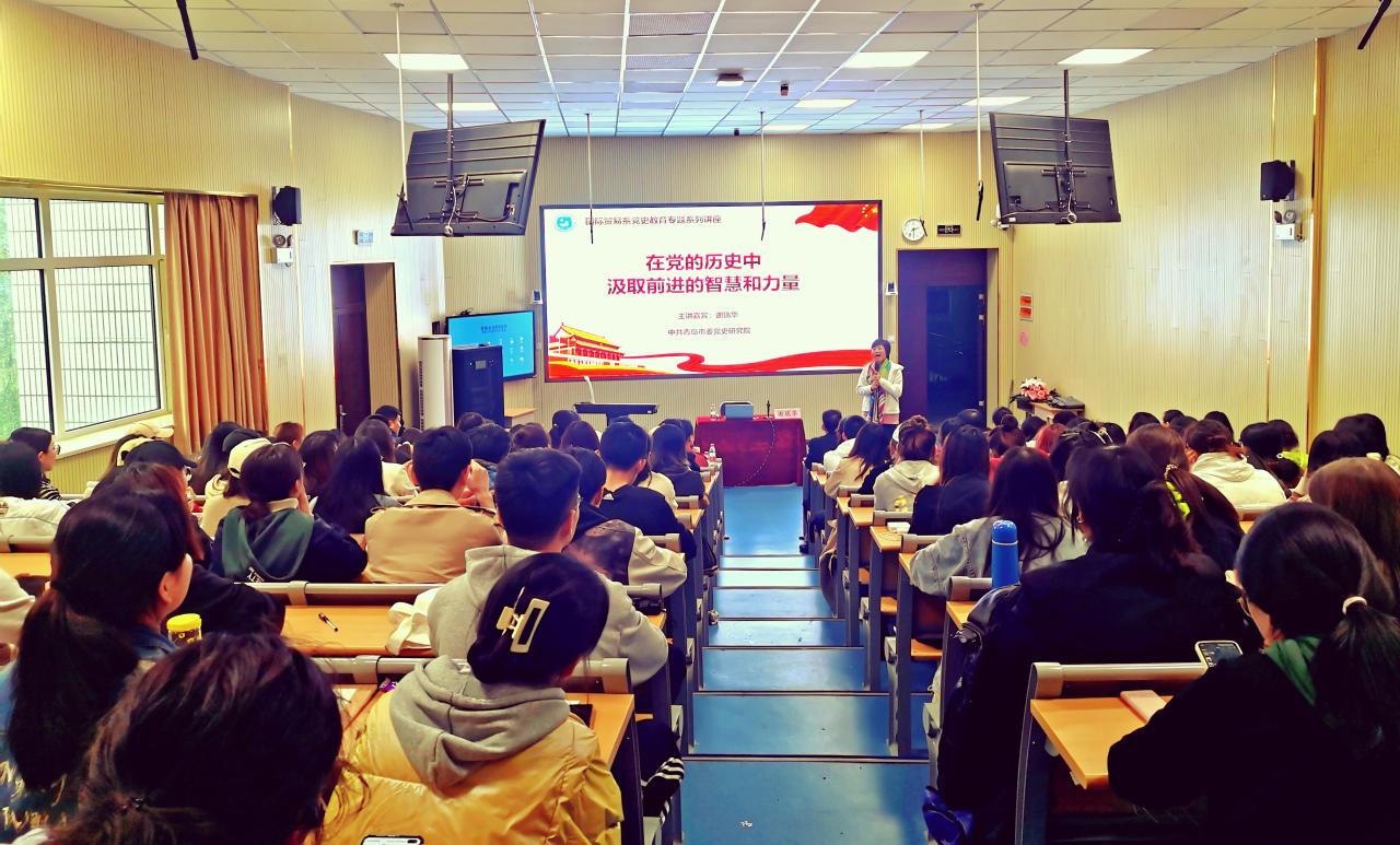 谢瑞华同志以《在党的历史中汲取前进的智慧和力量——学习习近平总书记在党史学习教育动员大会上的重要讲话精神》为题,从“树立大历史观,从历史长河中探索历史规律”、“学习党的历史,总结经验教训,不断开创马克思主义新境界”、“以实际工作成果检验学习的成效”三个方面,深刻阐述了开展党史学习的重要性和必要性,并结合在校师生实际,指出了学习的重点和方向。