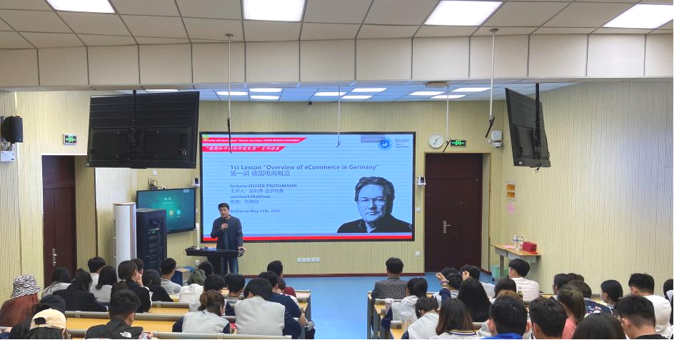 5月13日晚6点,伟德跨境电商教学创新团队客座教授、德国联邦电商协会主席Oliver·Prothmann在智慧教室为2020级跨境电商专业110名学生进行线上讲座,跨境电子商务系主任张鹏刚担任助教共同授课。