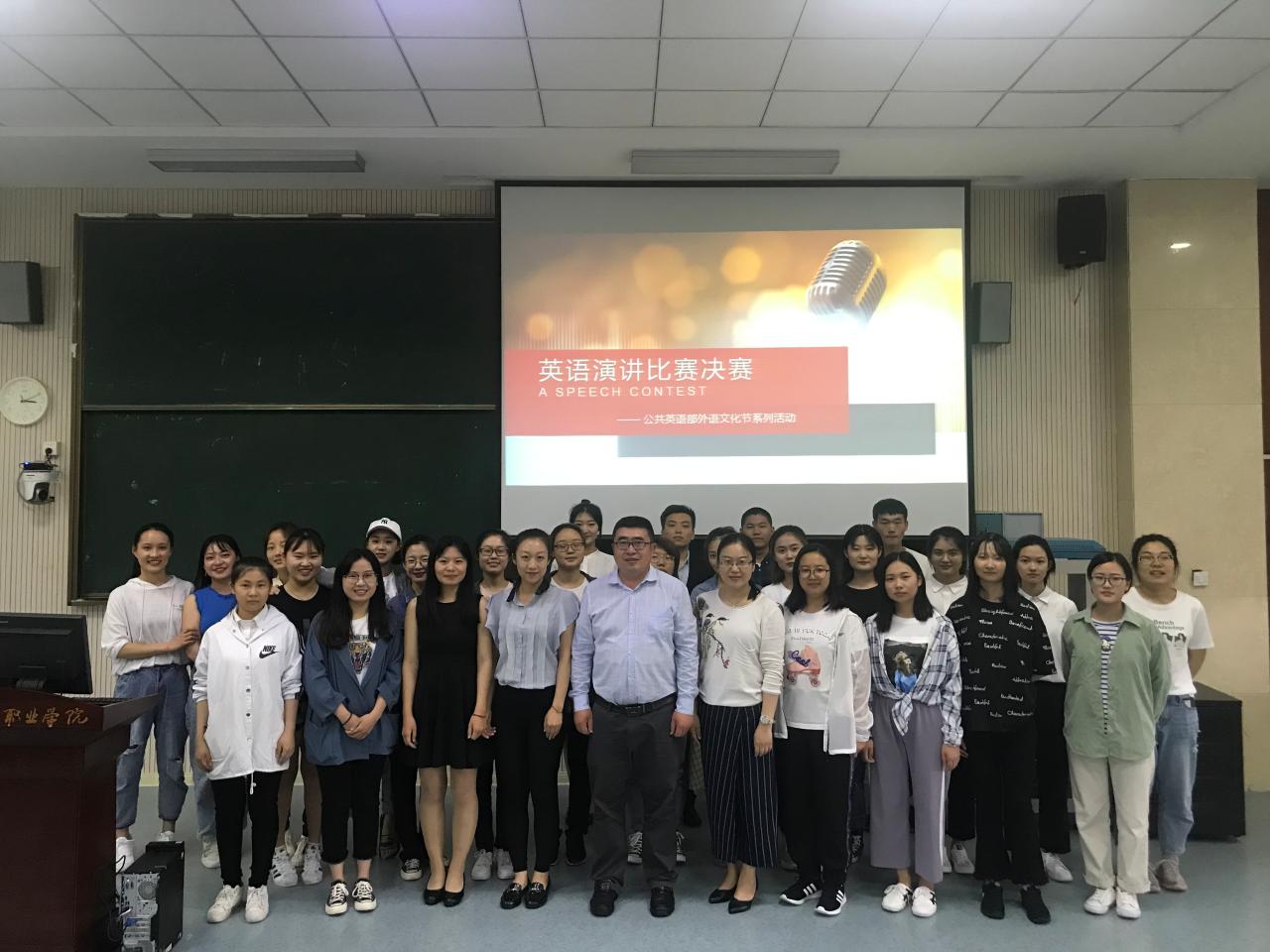 6月6日,第十一届外语文化节公共英语组演讲比赛决赛在A3阶梯教室举行。公共英语部副主任王伟及演讲比赛辅导团队的三名教师担任大赛评委。2018年山东省‘外研社杯’英语演讲比赛一等奖获得者16国贸11班的徐蕾主持了此次大赛。