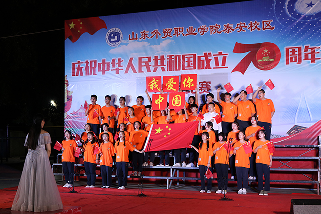 《我爱你中国》、《我们走在大路上》、《红旗飘飘》、《歌唱祖国》、《精忠报国》、《我和我的祖国》、《强国一代有我在》,一首首爱国歌曲,唱出了师生们对祖国母亲的美好祝福和殷殷深情,唱出了外贸人的坚定信念和奋斗热情,唱出了新时代追梦人的壮志雄心和青春激情。晚会在全体师生合唱《歌唱祖国》的歌声中圆满落幕。