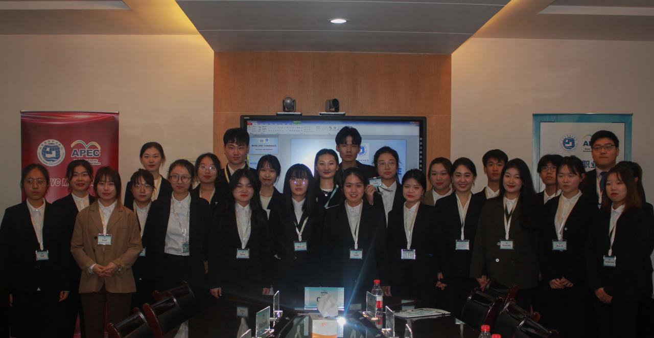 11月29日晚,学院第四届外贸文化节模拟APEC会议在行政楼201举行,来自商务外语系、国际贸易系、国际运输与物流系和跨境电子商务系的27名学生模拟担任了各经济体代表。