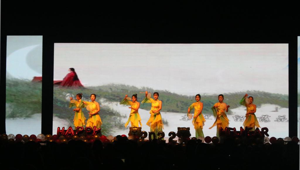 暖场视频播放后,齐韵鼓乐社带来的开场舞《权御天下》拉开了晚会的序幕;民族舞《芒种》以曼妙优雅、婉约优美的舞姿吸引了在场观众的眼球;朗诵《今天我们这样爱国》和《我的祖国》豪迈奔放、声情并茂;小品《两道门》让爱的真谛在隆冬的寒冰中传递;乐器《荷塘月色》悦耳动听,现场吉祥物“财多多”和“金小贝”的抽奖活动更使现场气氛愈加热烈。晚会最后在合唱《明天会更好》中落下帷幕。