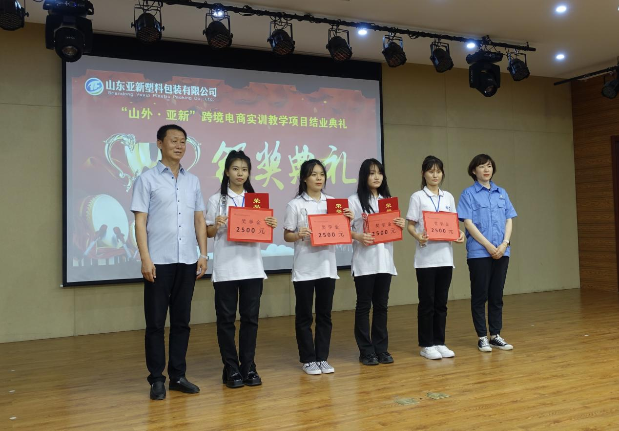 随后,校企共同举行了“山外·亚新”跨境电商实训教学项目结业典礼。典礼上,企业向优秀学生颁发了荣誉证书及奖学金;学生代表分享了实训心得;校企双方共同观看汇报视频;全体学生合唱了校歌《让梦想起航》。