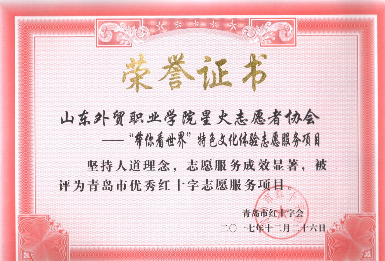 伟德红十字志愿者协会的志愿者们应邀参加交流总结会并做交流发言。伟德星火红十字志愿者协会被评为“青岛市优秀红十字志愿服务队”;“带你看世界”特色文化体验志愿服务项目被评为“青岛市优秀红十字志愿服务项目”;管德恕、王紫薇被评为“突出贡献红十字志愿者”;潘美宁、管佳琪、刘梦娇、霍梦雨等16同学被评为“星级红十字志愿者”。