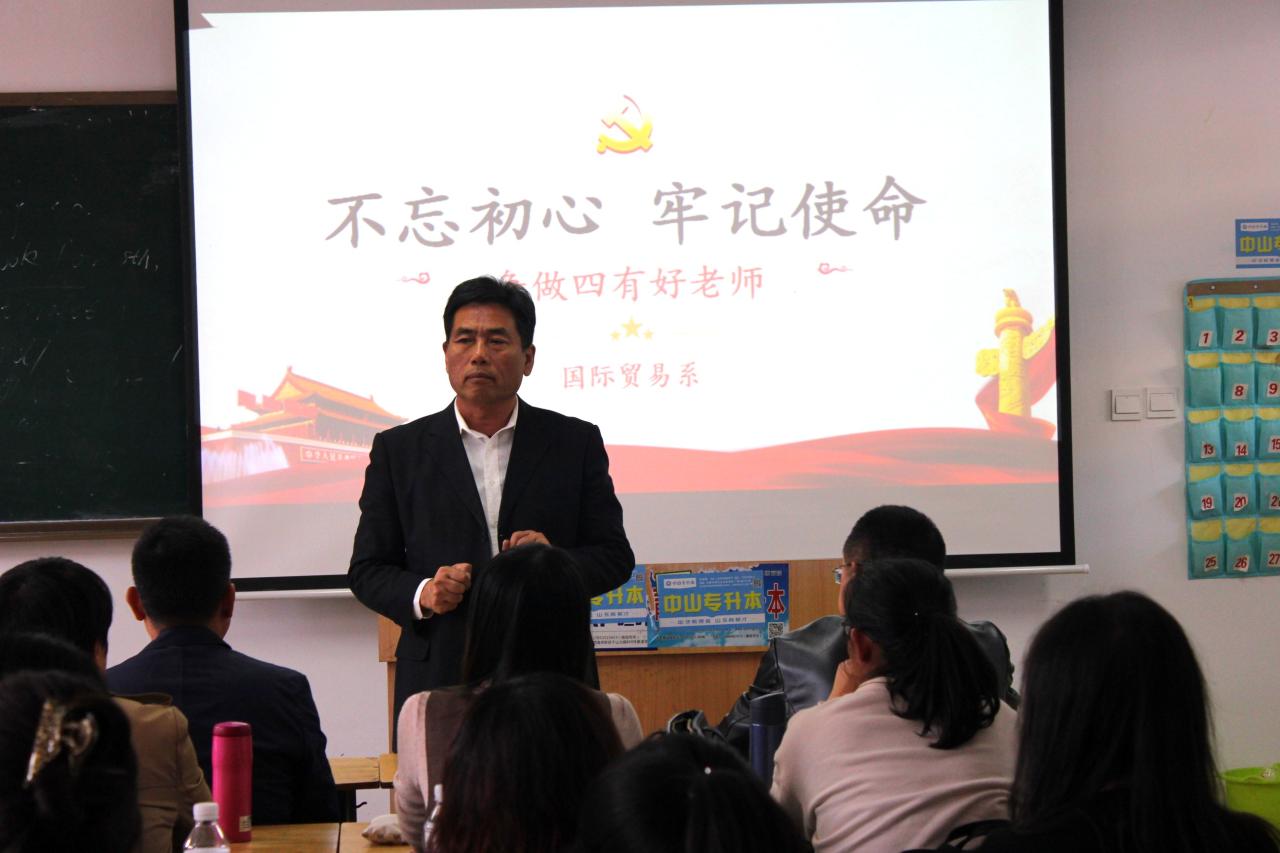 10月31日,国际贸易系举办“不忘初心、牢记使命——争做四有好老师”主题教育座谈会。国际贸易系全体辅导员以及教师、班主任代表参加了座谈,系党总支书记苏春鹏主持本次座谈。
