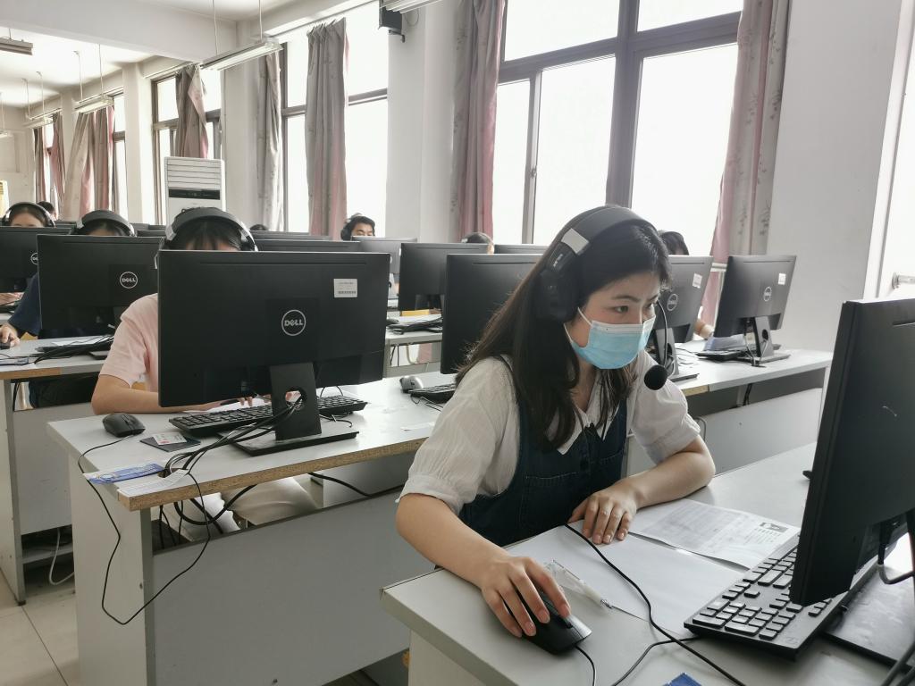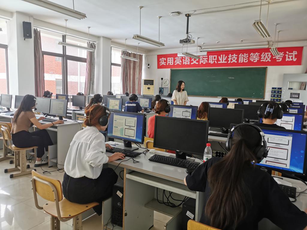公共英语部高度重视1+X实用英语交际职业技能等级证书考试,精心组织考前辅导,开展模拟考试,熟悉考试流程。公共英语部还和相关部门协力配合,有序地完成了设备检测、考场布置、考务安排等各项工作。考试当天,工作人员在考点严格落实疫情防控各项规定,规范考试流程,要求考生全程佩戴口罩,入场前进行体温检测和健康码检查,入场后用酒精湿巾擦拭考试耳机和键盘,确保考生在健康安全的环境中完成考试。
