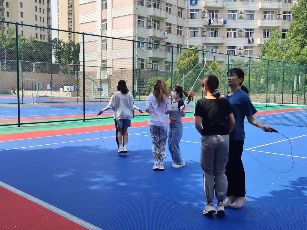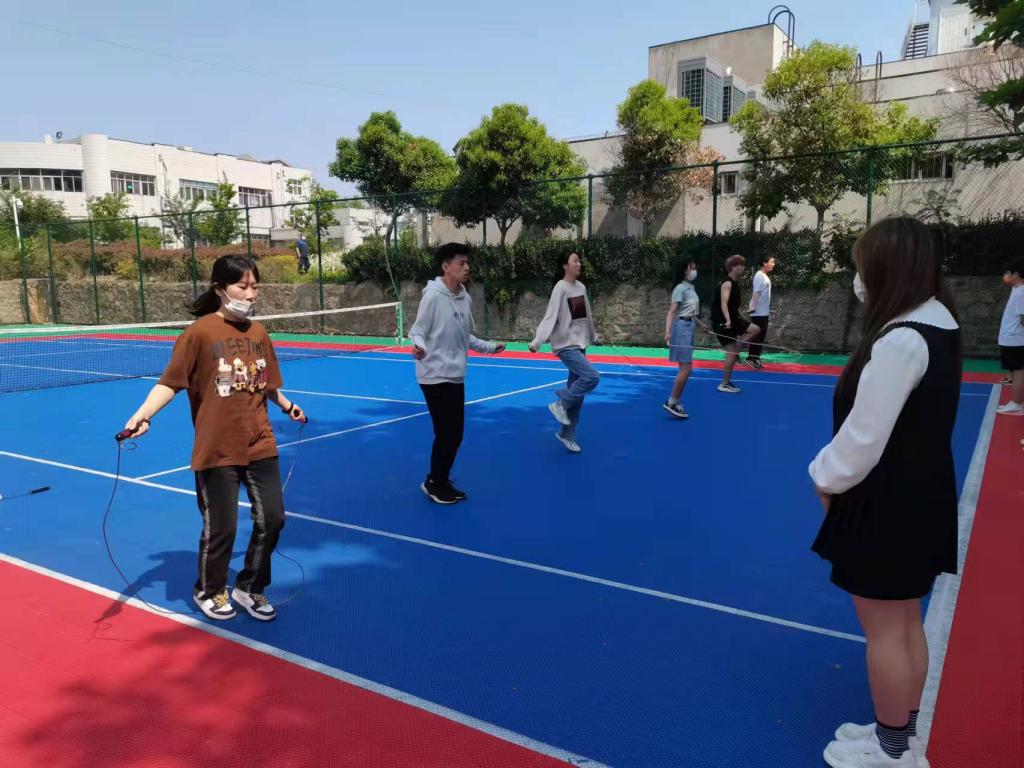 5月21日上午,“砥砺奋进守初心 青春献礼二十大”主题——“‘疫’起运动,强体健魄”花样跳绳比赛在篮球场举办。