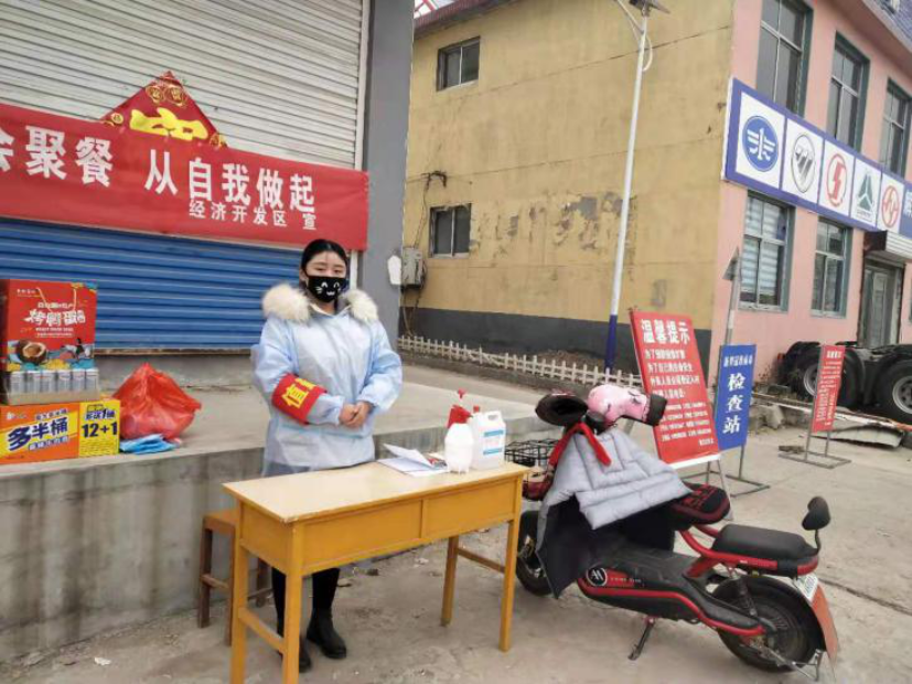 2017级学生类兴华,家住蒙阴县曹庄社区,在校期间是一名预备党员,在此次疫情发生期间充分发挥党员的积极性和先进性,毅然冲在社区防疫第一线。主要负责社区日常疫情防控工作的宣传。利用社区广播,撰写宣传稿、录制音频,向社区居民普及疫情防控常识;利用互联网,制作美篇、拍摄照片视频等,通过微信推送,将社区防疫工作情势宣传至社区居民。人员紧张时弥补执勤人员缺口,在防疫检查点执勤,进行人员和车辆的排查。她认为,“在疫情防控工作中,党员应有吃苦在前、享受在后的精神,坚持为人民服务,无私奉献,在关键时刻能够发挥先锋模范作用。其次,因为我热爱我的家乡,这片可爱的土地养育了我,我有责任和义务守护它!加之家乡所在社区青年力量比较稀缺,常年依靠老一辈的长辈们守护着这片热土,我觉得身为从家乡走出的青年大学生,我应该为家乡发展注入新鲜血液作出贡献。”