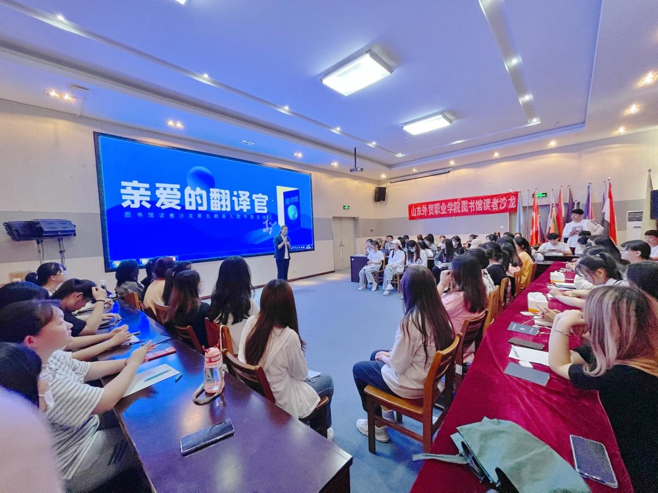 6月4日下午,由图书馆读者沙龙举办的第五期真人图书馆活动“亲爱的翻译官”在图书馆四楼会议室举办。本次活动特别邀请了公共英语部教师刘晓兰作为本期的“真人图书”,与伟德80多位读者一起交流分享了在国内外英语学习和翻译实践的亲身经历,介绍了世界多地的风土人情,并带领读者领略需要“闪电般思维”的同传译员的魅力。