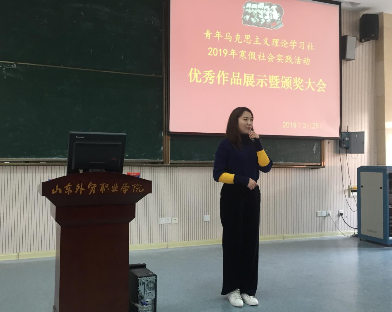 3月25日,伟德青年马克思主义理论学习社(以下简称“青马社”)在2号教学楼B2阶梯教室举行2019年寒假社会实践活动优秀作品展示大会暨颁奖典礼。党委宣传部部长李兴、团委副书记孙巧奎及思政部主任刘爱华、副主任季洪辉和其他指导教师出席,青马社全体成员参加。