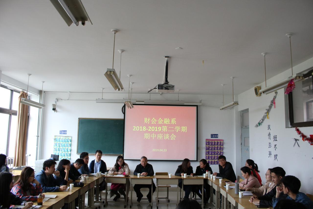 4月23日中午,财会金融系在2号教学楼A-202教室召开了2018-19学年度第二学期期中教学检查座谈会,会议由财会金融系副主任徐烨主持,教务处、公共英语部、基础部、思政部、图书馆等部门老师,财金系党政领导、教研室主任、2017级和2018级学生代表参加了座谈会。