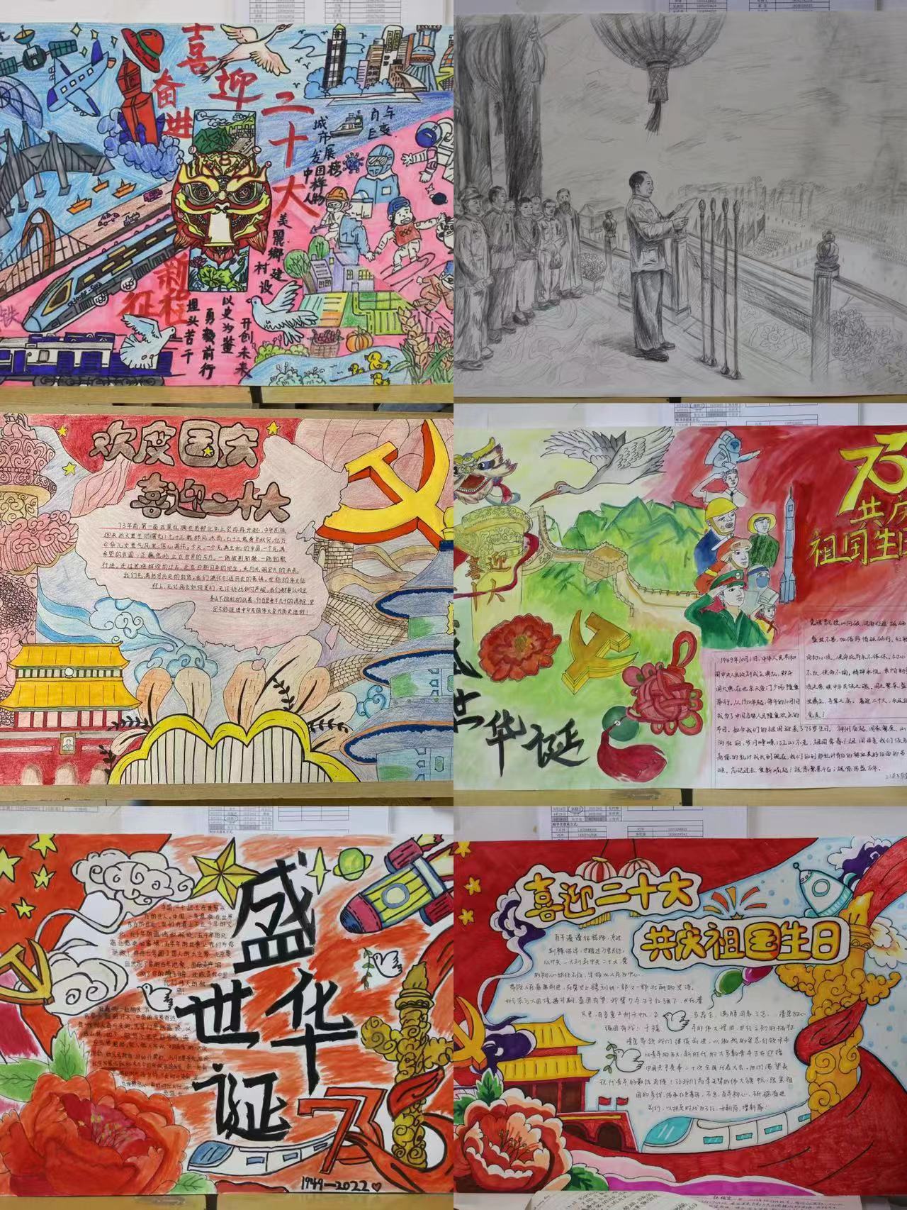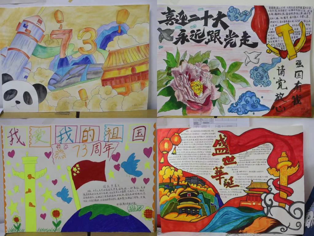 同学们积极参与,精心设计,以优秀的作品呈现出对祖国诚挚的热爱及对祖国美好的祝福,最终经过评选,共有孔晓琳等两名同学的手抄报获得一等奖,金鑫等三名同学获得二等奖,杜宜珍等五名同学获得三等奖,22级法语班获得黑板报设计大赛一等奖。