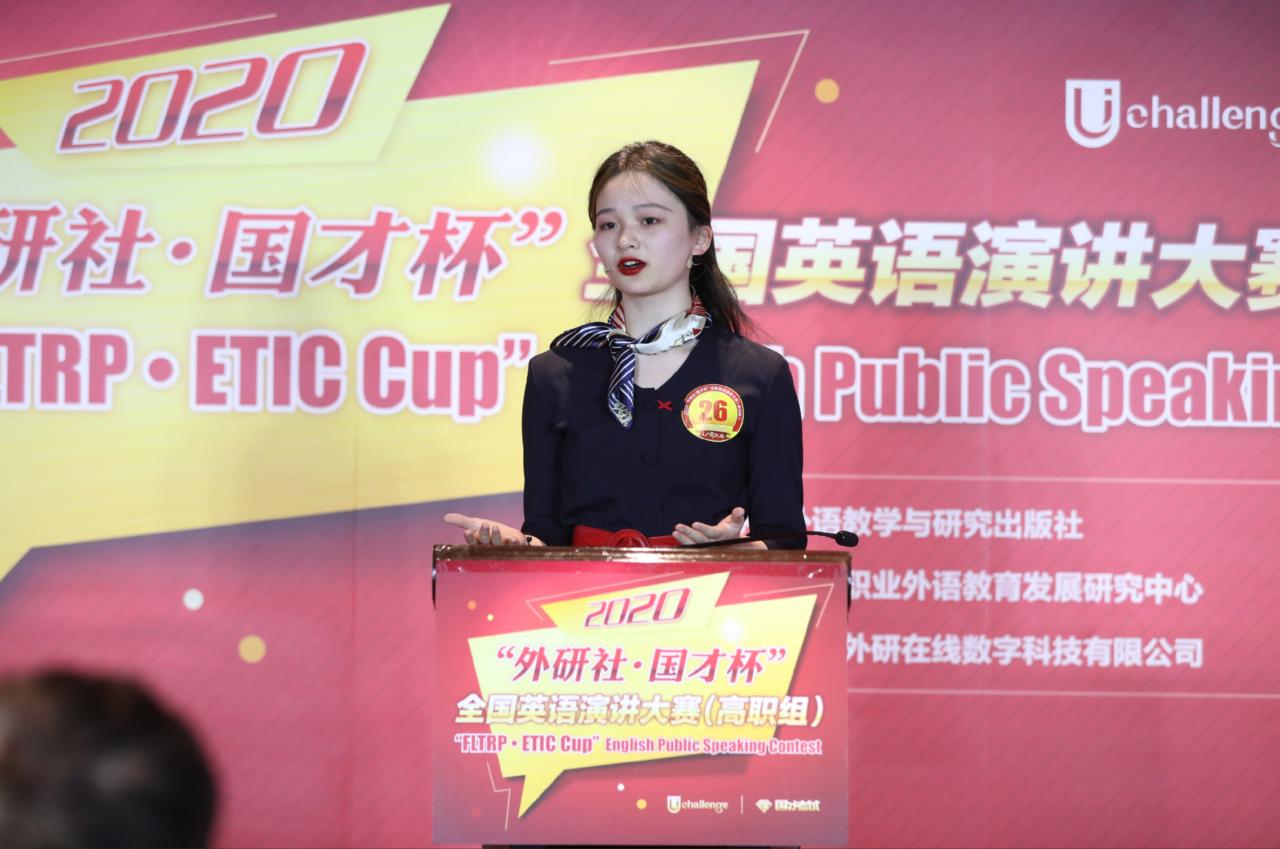 12月19日,伟德20空乘4班的李泽青同学在2020“外研社·国才杯”全国英语演讲大赛(高职组)决赛中以全国第五名的优异成绩获得国赛二等奖。