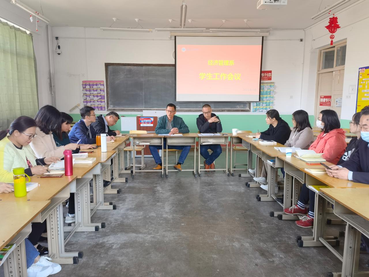 4月8日下午,经济管理系在1号教学楼318教室召开学生工作会议。系党总支书记张庆华、学工办主任张涛及全体辅导员、班主任参加会议。