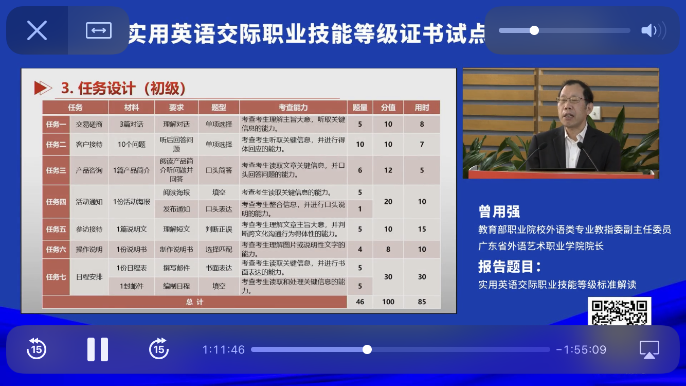 此次说明会是开展实用英语交际职业技能等级证书试点工作的开局之会。说明会详细解读了实用英语交际职业技能等级标准、全面介绍了实用英语交际职业技能等级证书试点工作方案,深入探讨了1+X课证融通与专业人才培养方案的有机融合。实用英语交际职业技能等级证书在我国国际影响力不断增强、职业教育改革持续深化的时代背景下研制完成,对接国际专业标准,注重语言能力与职业能力的全面融合,满足各行各业、各级各类工作领域对技术技能人才国际化水准的需求。