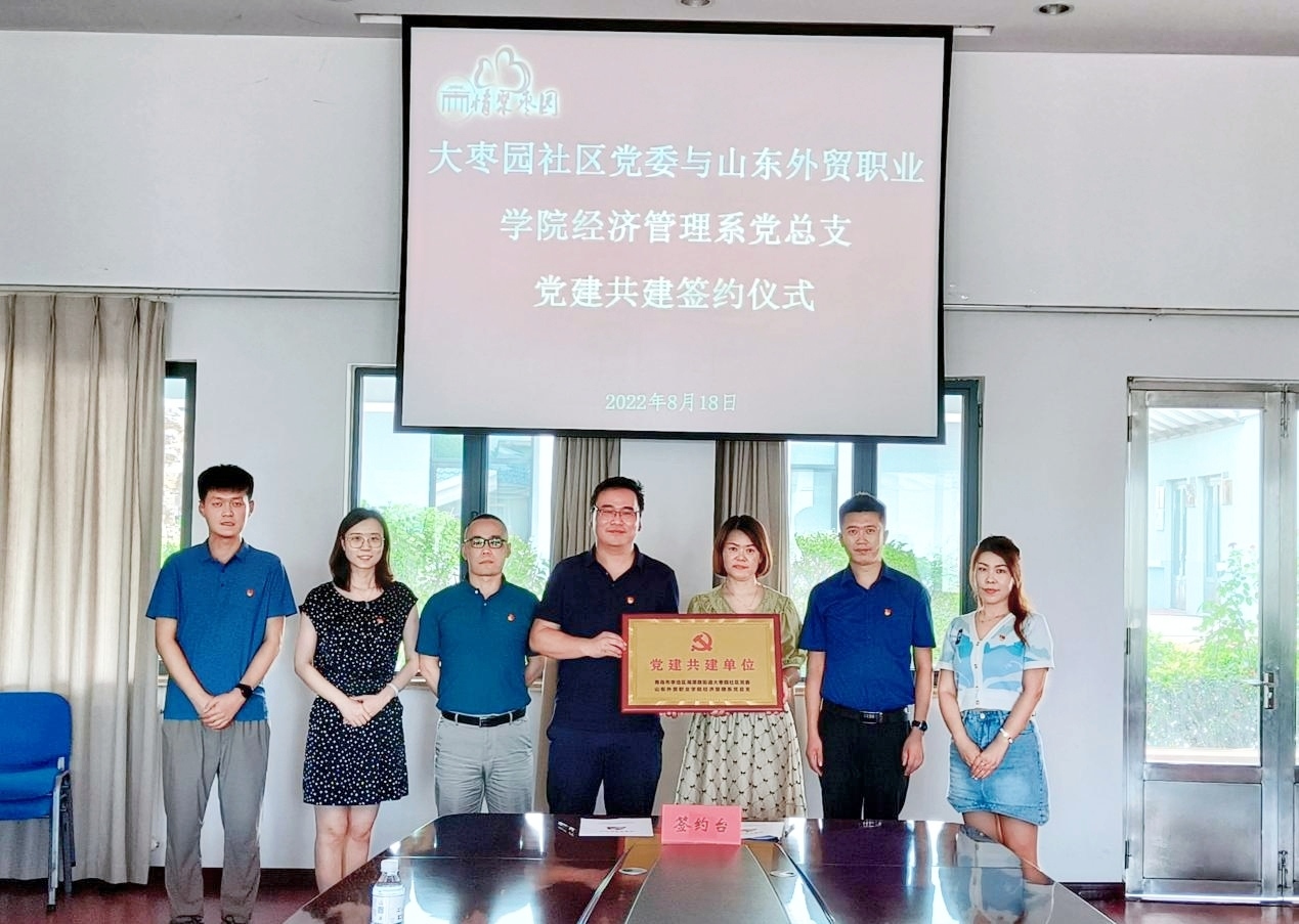 大枣园社区工会主席孙云翠、办公室主任孙松介绍了社区党建工作开展情况和近年来取得的成绩,经济管理系党总支临时负责人张清波、系副主任张涛介绍了系总支党建、师资专业、招生就业等情况。双方在资源共享、优势互补、注重实效的原则下,围绕如何搭建党建共建平台、开展党建项目培训、融合党员志愿服务等方面进行了深入探讨和交流。随后经济管理系党总支与大枣园社区党委举行了党建共建签约和揭牌仪式,力争通过多形式的合作,形成共建组织、共抓队伍、共享资源、共谋发展的党建工作新格局。