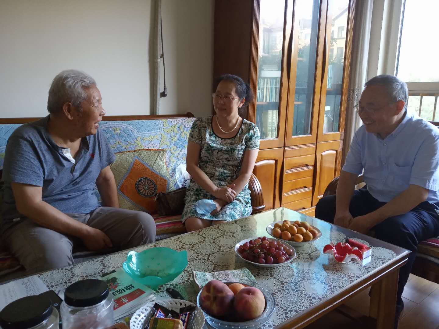 程巍详细询问了他们的身体状况和生活情况,感谢他们心系学院,关心、关注学院发展,希望老同志们继续发挥余热,一如既往地关心、支持学院工作,为学院发展出谋划策,提出宝贵的意见和建议。两位老同志感谢学院党委和教职工们对他们的关心,并祝愿学院的发展越来越好。