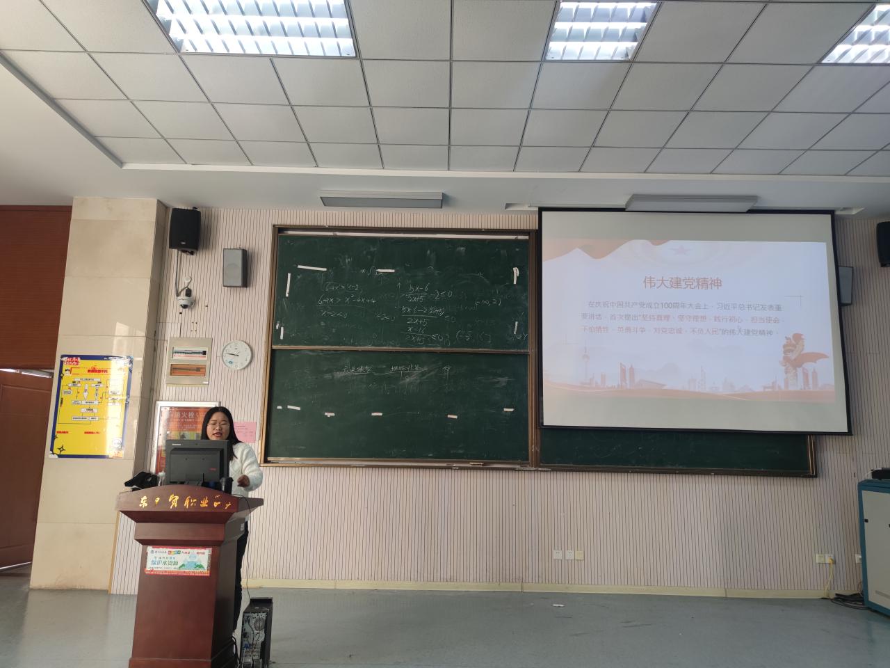 为学习习近平总书记在庆祝中国共产党成立100周年大会上的重要讲话精神,深刻领会我党百年奋斗历程中形成的伟大建党精神,感受百年大党的奋斗历程,激发学生的爱国主义热情,10月,国际运输与物流系学生党支部红色旗帜先锋队开展红色旗帜宣讲团·伟大建党精神主题宣讲活动,红色旗帜宣讲团成员以青年的视角讲述中国共产党人的政治品格、价值追求、精神风范,深入各团支部开展宣讲活动,讲好党的百年故事,讲出青年榜样力量。