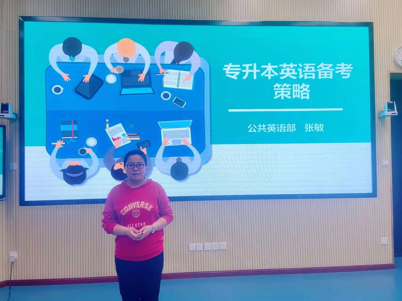 12月3日下午,公共英语部在1号教学楼第四阶梯教室举办了题为“专升本英语考试备考策略”的英语讲座,主讲人为公共英语部教师张敏,讲座吸引了各系学生参加。