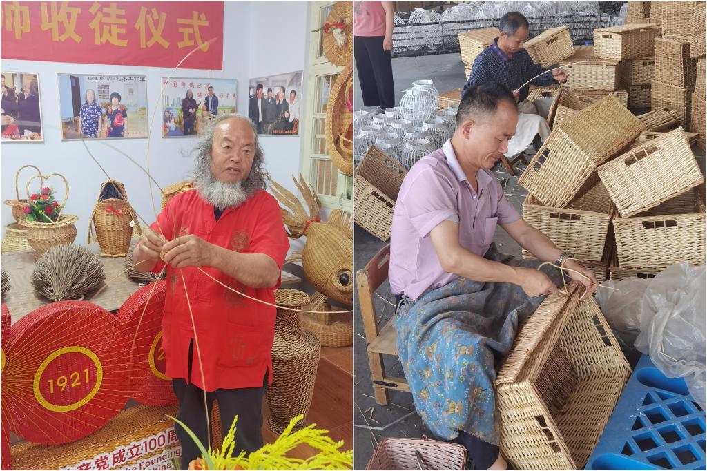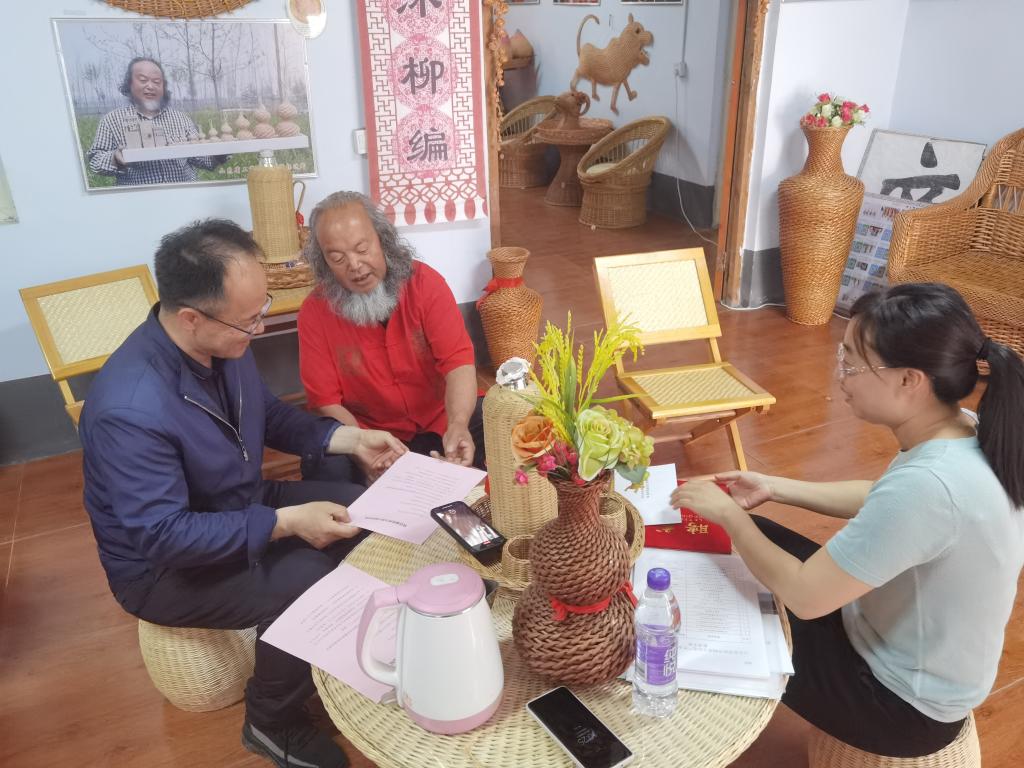 5月28日,在“杨进邦大师工作室”,杨进邦热情接待了项目组一行。他热情地为项目组讲述了自己从事柳编创作的初衷以及近年来自己在柳编创作和带动当地脱贫攻坚、乡村振兴上取得的成果。项目组在杨进邦大师的带领下,参观了工作室,杨进邦为项目组仔细讲解了近年来创作的柳编代表作品以及制作背后的故事。