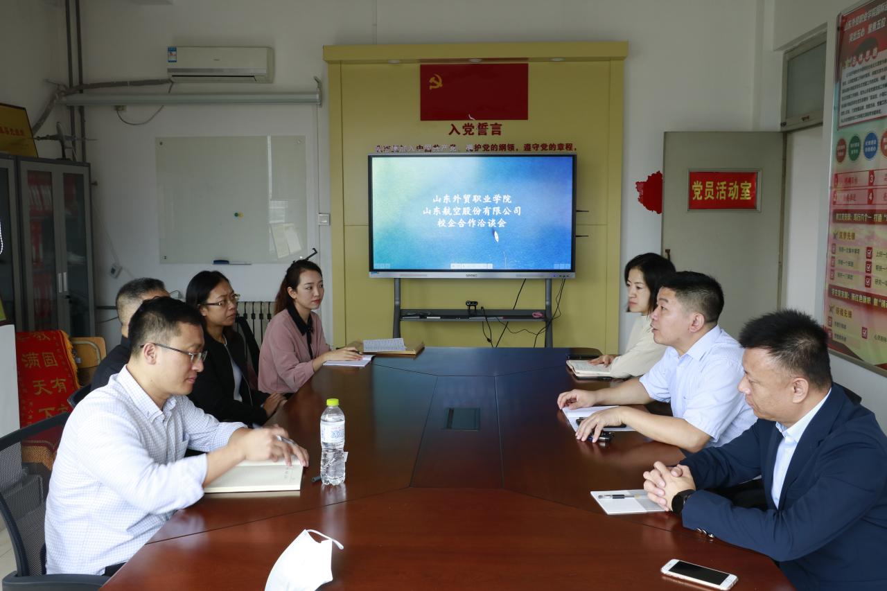 10月9日,山东航空股份有限公司一行来伟德举行校企合作洽谈会,国际运输与物流系主任刘希全,党总支临时负责人王思文,民航党支部书记杨超参加了座谈。