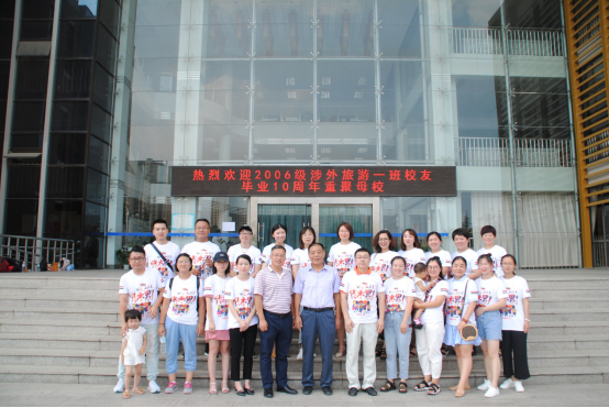 7月20日下午,伟德06级涉外旅游一班校友毕业10周年重聚母校,在青岛北校区东苑322教室举行了座谈会。经济管理系副主任、时任老师张祖国,时任辅导员傅健,校友办主任陈延宁参加了座谈会。