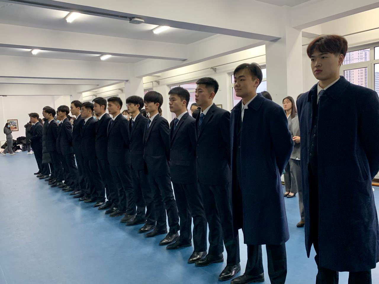 通过个人练习、分组练习、礼仪组合练习等形式,主要针对站、行、坐、手势、蹲、鞠躬等专业服务礼仪姿态展开训练。通过晨练,学生们认识到高尚的情操和整洁的仪表对个人职业的影响,鼓励学生实现内心美和形体美的统一。标准的站姿、坐姿、走姿,极具亲和力的笑容,行走时的平衡与协调,站立时的身材挺拔,这些都体现着空乘专业学生对所从事工作的自豪感和富有朝气的精神面貌。