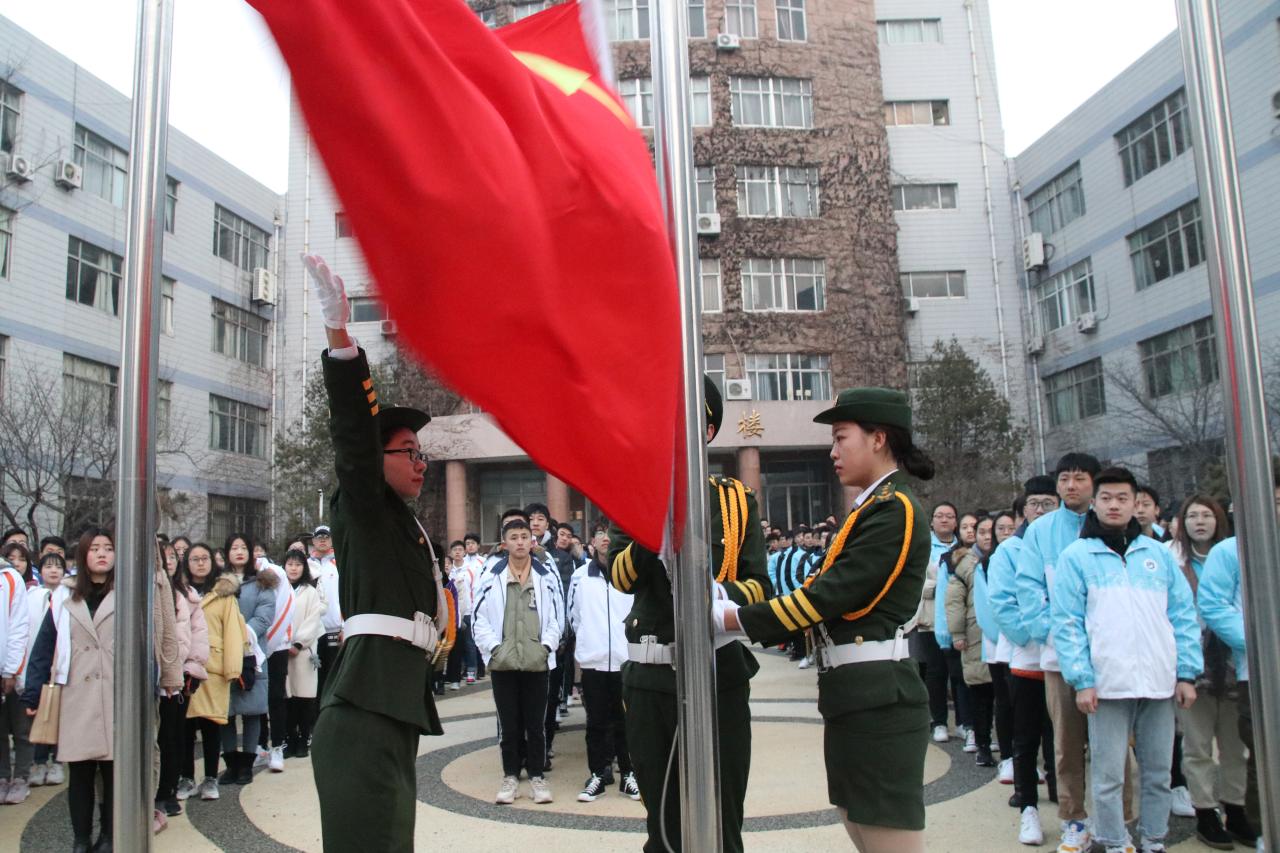 2月25日,伟德在青岛校区举办了新学期开学第一次升旗仪式,院系学生会干部、各团支部代表400余人共同参加了仪式。