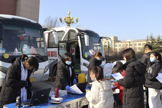 12月24日,泰安新校区学生会及志愿者社团在泰山会堂前组织“无偿献血,传递温暖”献血活动,吸引了广大师生的踊跃参与,共计有200多人次参加献血,自愿为社会奉献一份爱心。