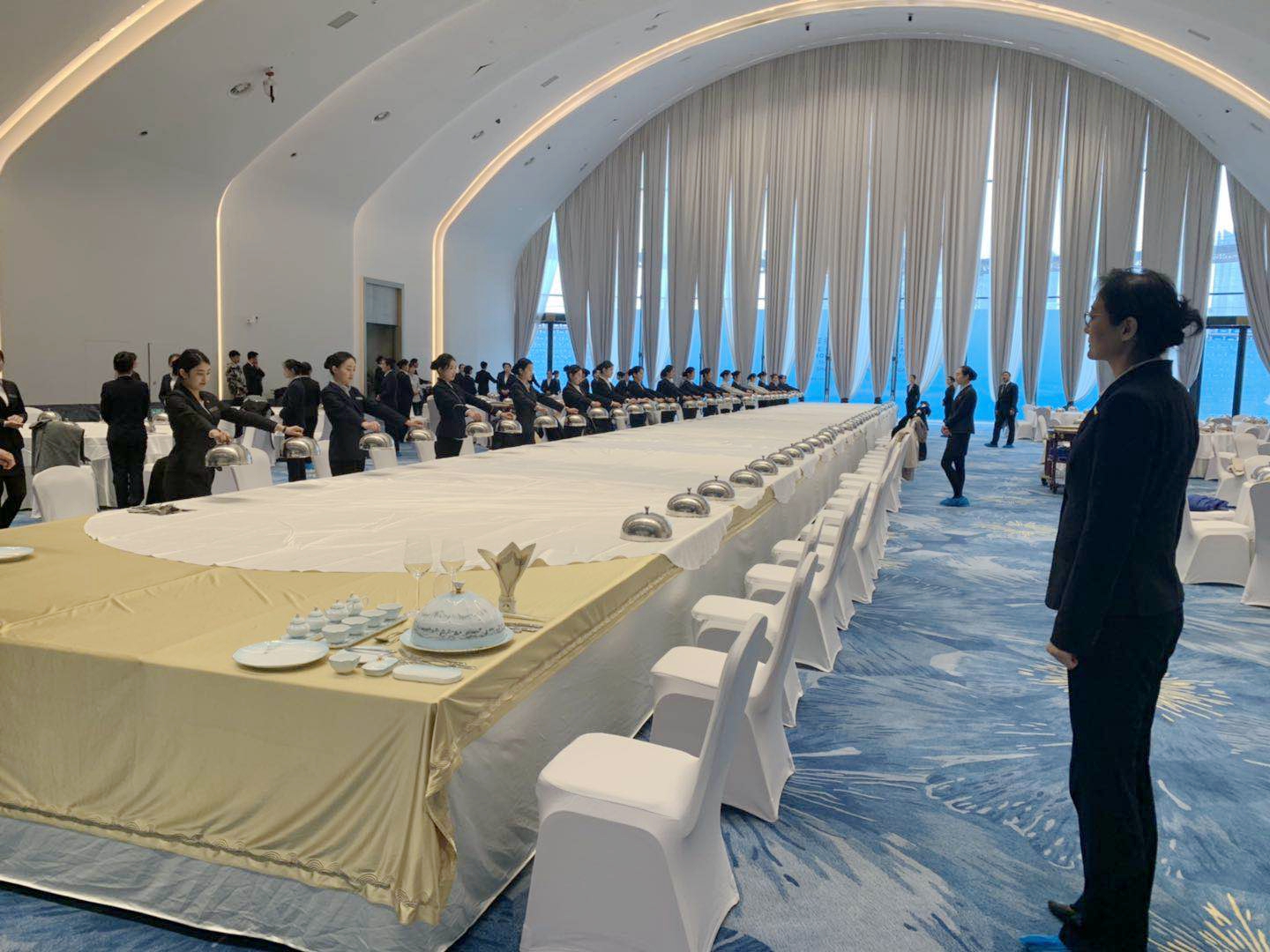 参与本次服务工作的同学经过层层选拔和推荐,全部具备良好的形象、高级别宴会服务能力、英语应用能力和团队协作能力。参加服务的同学接受了为期一个月的集中授课、情境预演、实景演练等形式的专题培训。活动中,他们以勇挑重担、主动担当的精神和热情、职业、优质、高效的服务赢得了与会中外宾客、部队和国际会议中心的认可与称赞。